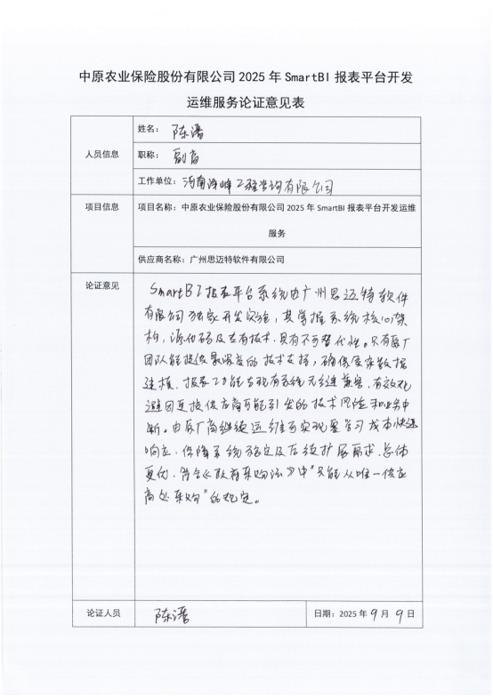 1.項目名稱:中原農業保險股份有限公司2025年SmartBI報表平臺開發運維服務